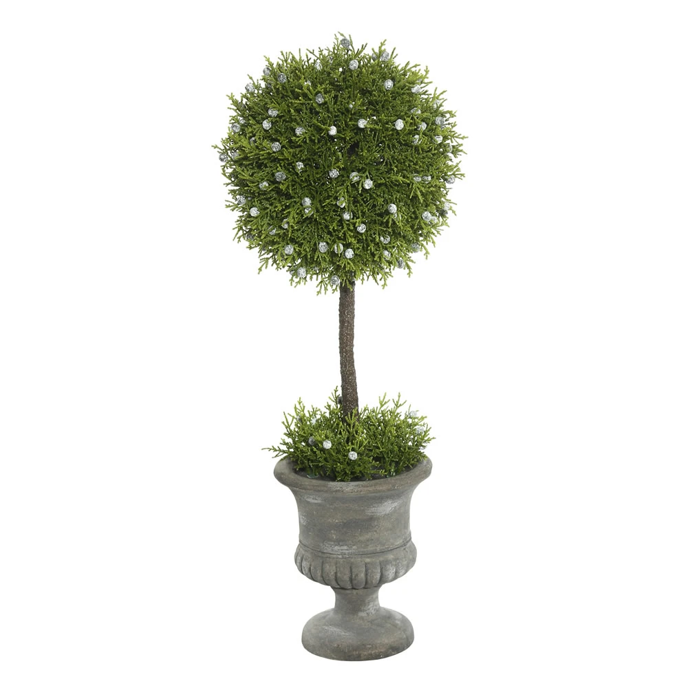 Have the elegant manicured look of a topiary without any hassle with this 21 inch Oregon Juniper Topiary! This topiary is a beautiful and easy addition to your kitchen or patio season after season. This artificial topiary add natural looking decor without any of the work.