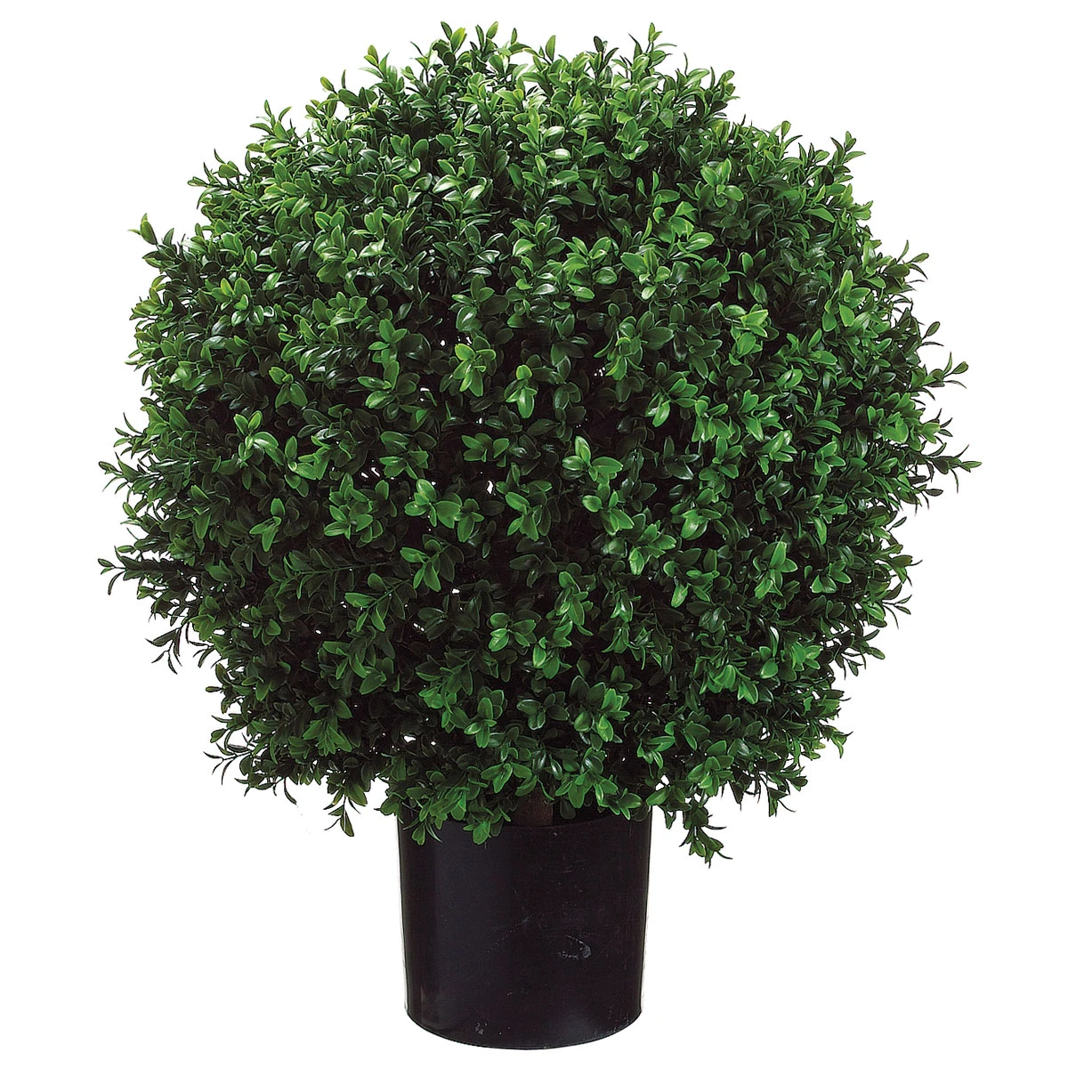 Artificial ball topiary will add a natural accent to your decor. Our 24 inch boxwood ball topiary will look amazing in an entrance to a home or office or as an accent in a restaurant. Our ball topiaries are potted in a plastic pot that can be added to the decorative container of your choice. Our outdoor artificial plants are infused with a UV inhibitor that is designed to protect against harmful UV rays, and they are designed to withstand average wind and rain exposure.
