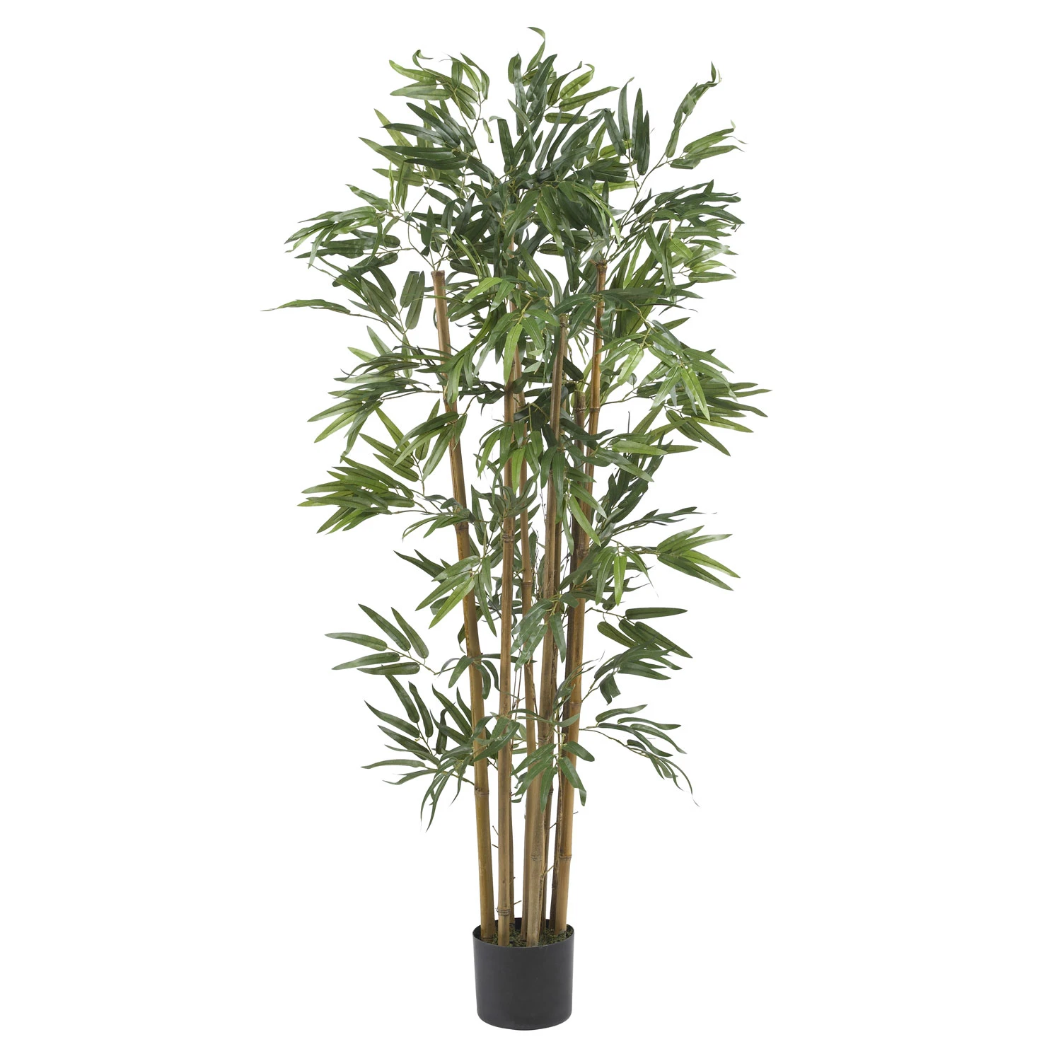 The artificial bamboo plant will continually prosper throughout the numerous years you own the plastic plant. You will feel blithe knowing the plant is there in your studio giving off the impression of glamour. This is why an artificial multi Bambusa bamboo palm would be perfect for your home. Having a fake palm tree in your home will feel like you are right there in a tropical area. The 4-foot artificial multi Bambusa bamboo palm tree will give your home a warm and calm feeling. You will feel relaxed knowing the plant is there in your home giving off the appearance of a softened landscape. The palm requires no extra care. There is no need for watering, sun, or a warm climate. This plant will thrive even if there is no sun to be found. The quality of the plant will make people think it is a real plant. A home or office will have conditions that would normally harm a real palm plant. That is why the artificial multi Bambusa bamboo palm plant is the best option to create the atmosphere for being near a tropical place. The silk plant is inside of a necessary potted black pot. If you think having a certain plant will make you feel good and relaxed, then you need to go on and welcome this plant into your home. The plant needs to claim a corner in your home; the 4-foot synthetic multi Bambusa bamboo palm should be in the midst of it. The palm tree has over 700 green-like leaves on a cluster of shaded natural looking bamboo stalks. Give the impression of a lush and tropical sensation.