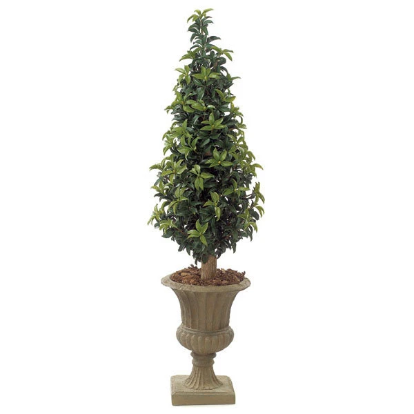 Artificial outdoor topiary will add a creative accent to the front entrance of your home or business. 5 foot outdoor Laurel Cone topiary can be installed directly into the ground for a natural look or in a decorative planter. Our outdoor artificial topiary are infused with a UV inhibitor that is designed to protect against harmful UV rays, and they are designed to withstand average wind and rain exposure.