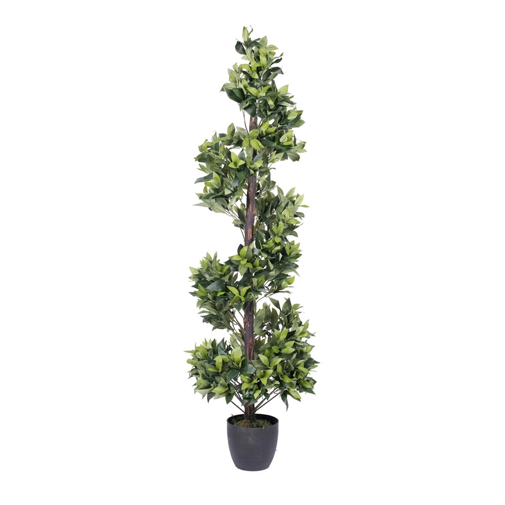 Let this tutoned green Bay Spiral Topiary bring life and color into your home or office. This artificial topiary gives you the trimmed manicured look without any work. It comes already potted with decorative moss for easy and quick repotting.