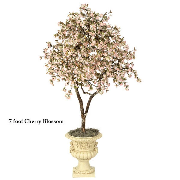 Our 6 foot Silk Cherry Blossom Trees are sold in pink or white. The picture above is shown in pink. This silk tree is manufactured using a natural trunk and it is custom made to order. No two artificial Cherry trees are exactly alike.